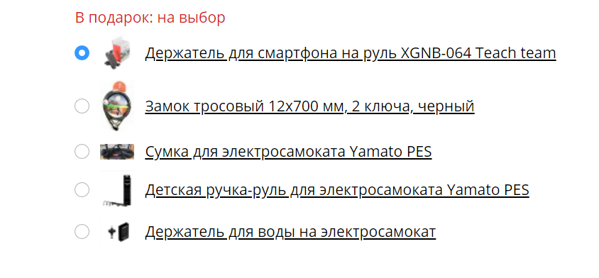 При покупке любого вида электротранспорта в Барнауле мы дарим в подарок нужные аксессуары. Перечень подарков вы можете увидеть в карточке товара.