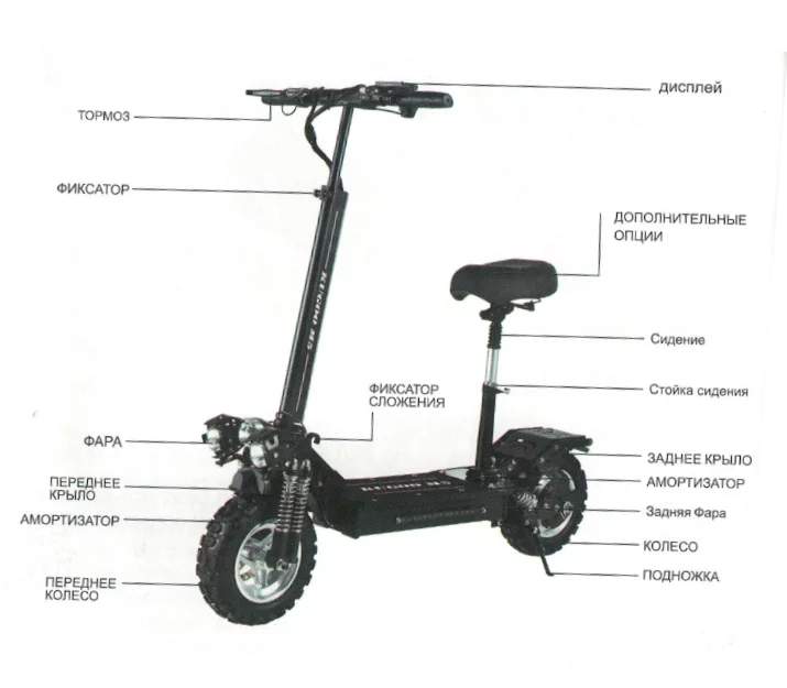 Цветной дисплей, расположенный на руле, позволит отслеживать параметры вашего транспортного средства и вы своими глазами сможете наблюдать, как разгонитесь буквально за считанные секунды до максимальной скорости (55 км/ч).