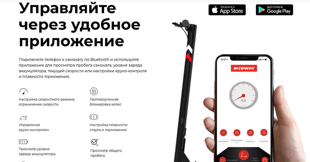 Технические характеристики электросамоката MIDWAY i-Max PRO: