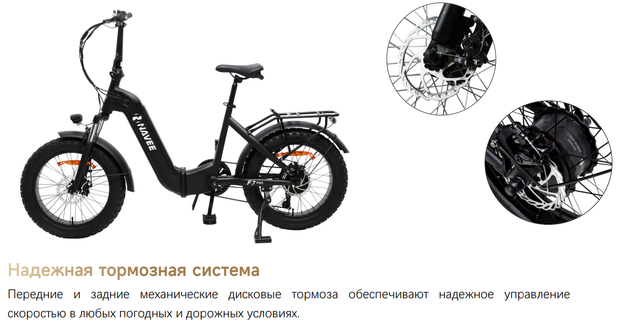 • Передние и задние механические дисковые тормоза обеспечивают надежное управление скоростью в любых погодных и дорожных условиях